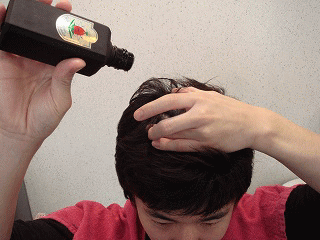 育毛剤の塗布は気になる部分を中心に指で髪を分け、頭皮に付くように行います。