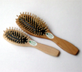 ピン1本1本が竹製。だから静電気が起きにくく、自然でツヤのある髪が得られます。ツゲ櫛と同じく、使えば使うほど皮脂となじんで、ブラッシングしやすくなります。ゴム製の台座ですので弾力性が高く、優れたマッサージ効果が得られます。ピン先(ブリッスル)が丸いので、思い切ったブラッシングやパッティングをしても地肌を傷めません。適度な刺激が育毛を促します。 |